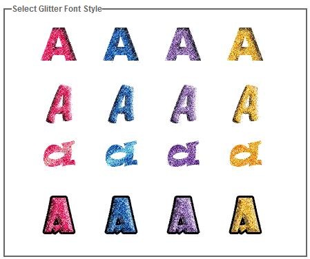 Andiamo al sito sito http://www.glitterbank.com/ e dal menù nella barra grigia scegliamo glitter generator. Scendendo sotto nella pagina, per prima cosa scegliamo lo stile che vogliamo per i nostri caratteri, cliccando su una delle lettere: